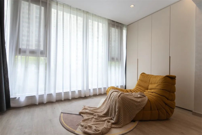 书房、客厅一体化:舍弃阳台的家庭时常会考虑把靠窗侧打造成小型书房,如若客厅与书房之间没有隔断,就容易相互影响,缺少独立性。不妨尝试以半面书柜为界,落落大方。